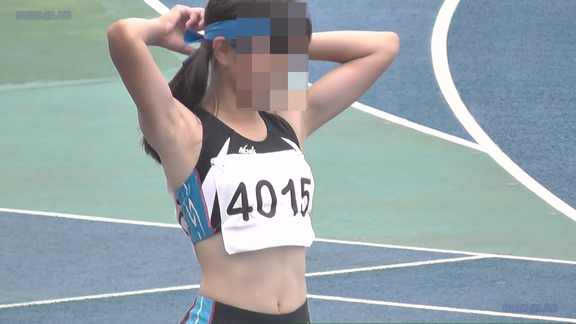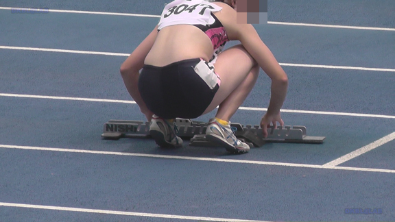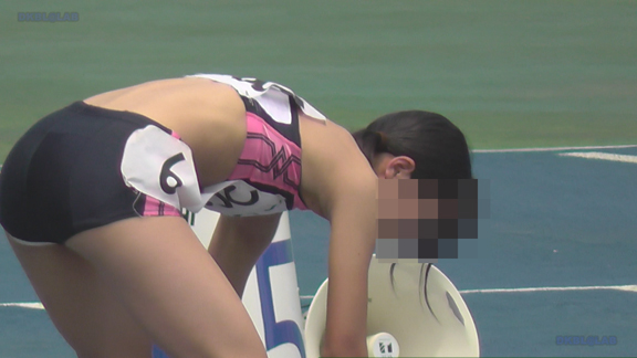 27分ごろより短距離のシーンへ、スタート前準備時に黒Vユニ娘の大き目インナーがまたまたこぼれおちております!