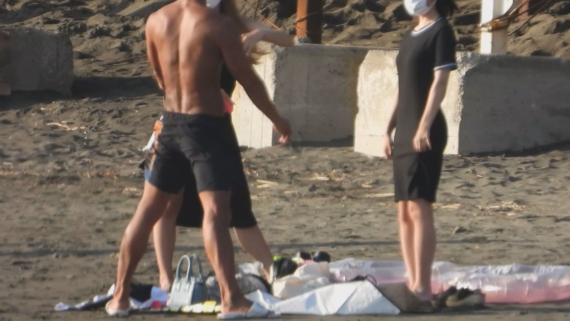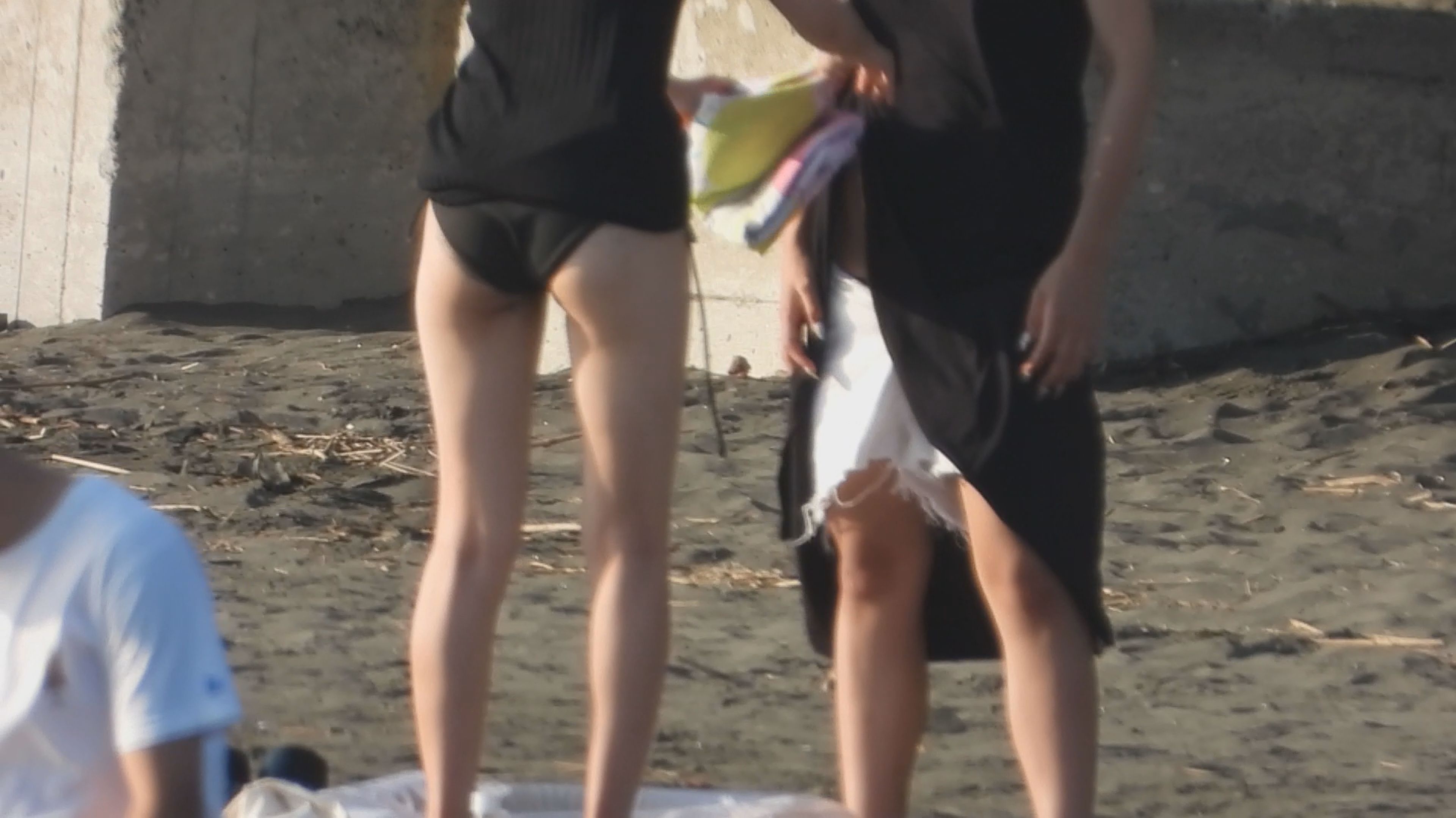 ③海岸生着替えでパン〇ィを履いてる途中にナンパされ、スカート内で半ノーパン状態の浪漫