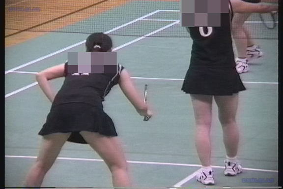 そして6分ころからは上ピンク下黒ユニチーム娘の登場!激しいラリーにスコートめくれ度がスゴイことに!
