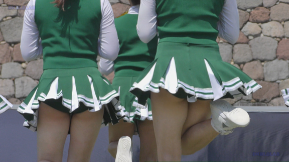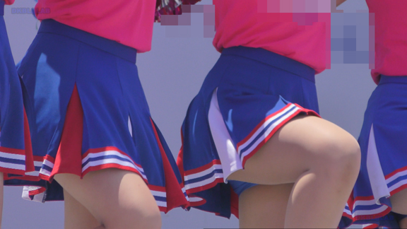 そして16分ごろより別会場の平場演技シーンへ、先ほどとは別チームの青・白・赤チアユニ娘たちが登場です!ハイキックシーンでは青Vアンダーがコンニチワ~!