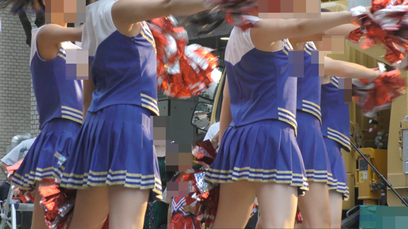 続いては29分ごろより白・緑チアユニ娘の同会場の平場演技シーンへ!演技中のハイキック・回転シーンではお目見え連発!!!緑Vアンダーがコンニチワンワン!!!