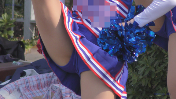 続いては同場所の平場応援演技シーンで赤・白チアユニ娘の登場!こちらも激しい応援演技シーン!短め紺スパが激しくお目見え!