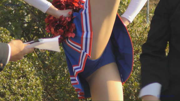 激しい応援演技シーンに紺Vアンダーも激しくお目見え!激しい応援でスコートからもれちゃった上インナーをお直しするシーンがとってもカワイイ!