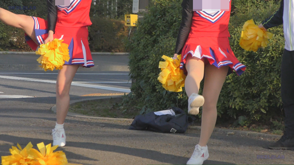 14分ごろより同場所の平場応援演技シーンで赤・白チアユニ娘、紫・白チアユニ娘が続いて登場します!