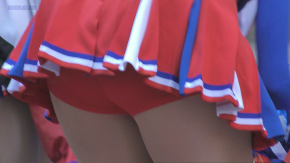 白・青チアユニ娘からは紺Vアンダーが!青・白チアユニ娘からはツルテカ短め青スパアンダーが!交互にお目見えです!