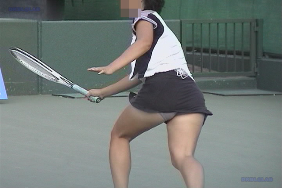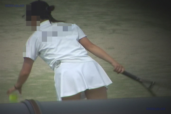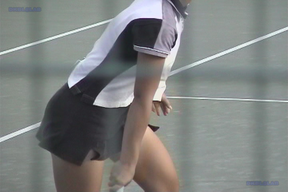 8分ころより黒ユニ娘と薄いグレーワンピースユニ娘との試合模様へ。ワンピースユニ娘の力強いサーブ・スマッシュにお目見えする短いくろぱんが素晴らしい!!