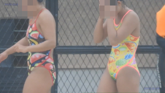 練習合間に陸の上で休憩中Vキョウスイ娘たちのシーンからスタートです!水中から上がったばかりのキョウスイ娘が寒さで座らず立ったまま体を震わせている姿に感動します!