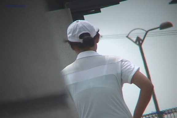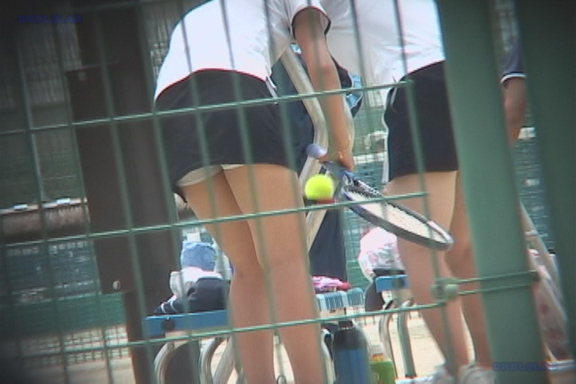 ダブルスリットスコートのユニ娘のラリー以外でも強風にあおられピラピラめくれております!