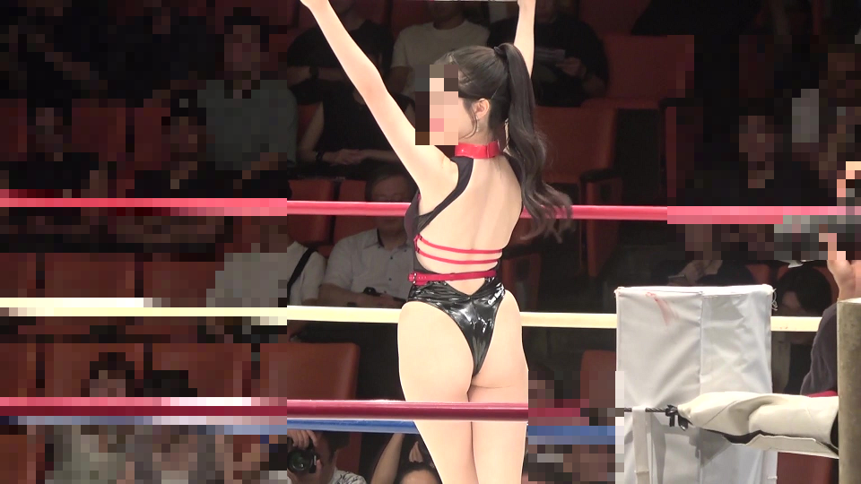 大観衆の視線が降り注ぐ中、臆することなくキッチリTバックを見せつけます。恥ずかしがる素振りは一切見せません。終始笑顔で仕事をこなす様はさすがプロ中のプロです。