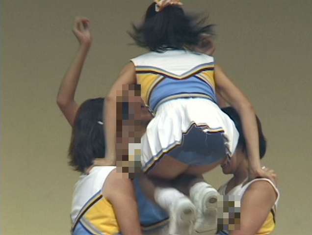 ハイキック、ターン、スタンツ、などなどチア技を披露。