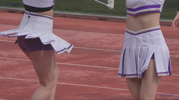 ハーフタイムではポンポ・ンバトンなど様々な手具に持ち替えて応援アピール!短め紫スパもイイ感じにお目見え!!