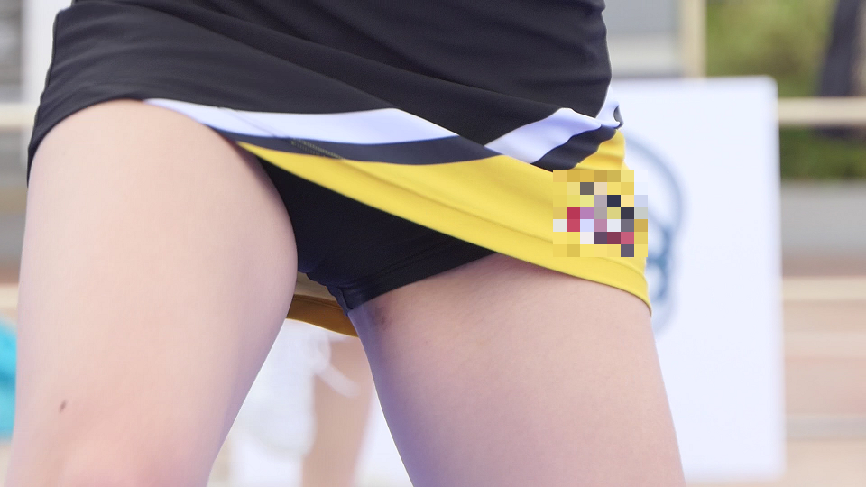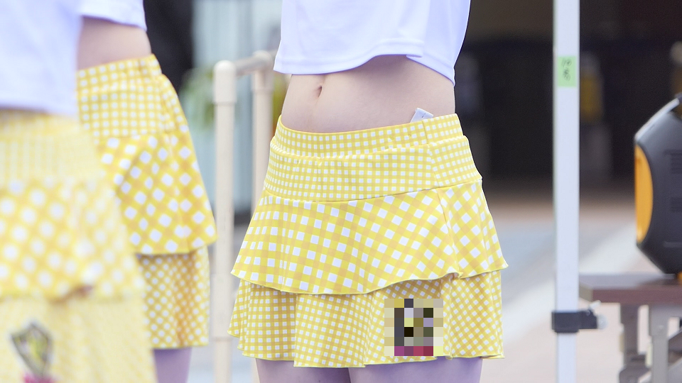 黄スカート&黒スパッツ。