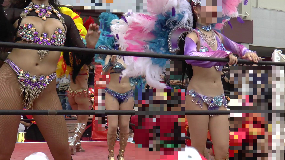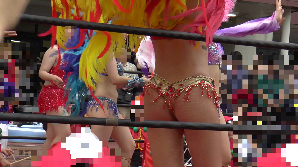 引き続きリング上で紫のあのカリスマダンサーさんメインで撮影していますが褐色の超爆乳姫や黄色の爆乳ちゃんや赤の元気なダンサーさんはじめダンサーさん総登場です。