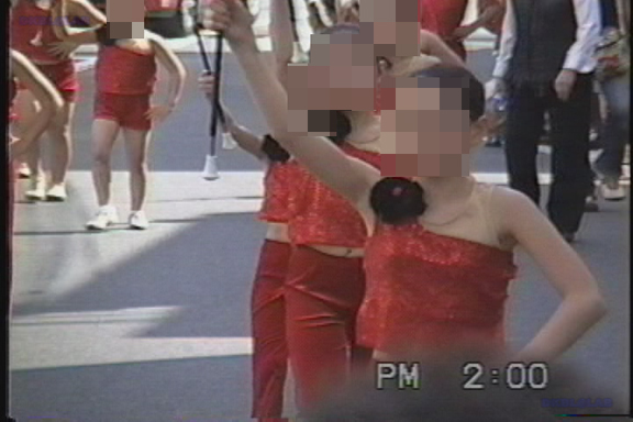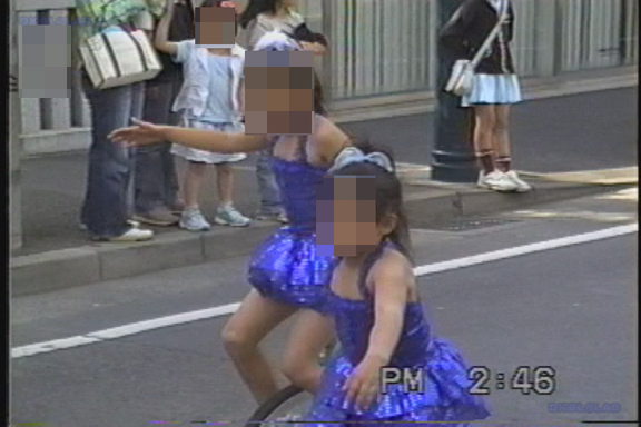 ラインクッキリの全身レオタード娘やセパレート衣装のビギナー娘などバトン娘の行進が続きます!パレード衣装の一輪車隊などとってもプリティー!