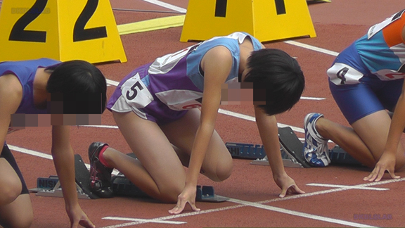 まずはビギナーからちょい上娘の短距離走のシーン!大き目ランシャツ娘の大活躍!