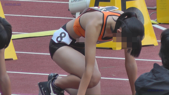 25分ごろより短距離ハードルのシーンへ、短め緑スパユニ娘のスタート前シーンをじっくりと!