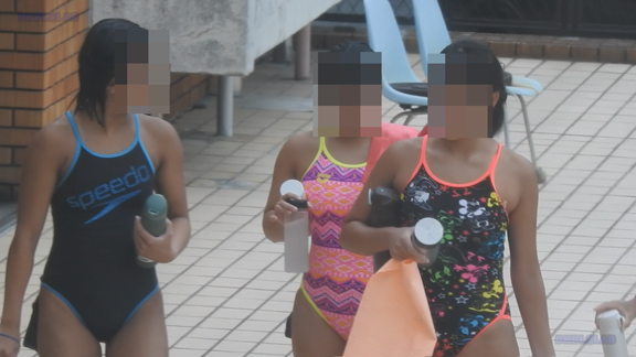 21分ごろより別日の練習会シーンへ、Vキョウスイ娘が三々五々集まって参ります!水を少しかけながらゆっくりとスイムキャップに髪をINして徐々に練習モードに突入して参ります!