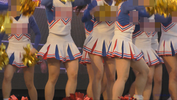 22分ごろより別会場へ参ります。最初の登場の別青・白チアユニ娘が登場!チアユニにサンタ帽がとってもプリティ!ハイキック・回転シーンでは短め青スパがジャンジャンお目見えです!!!