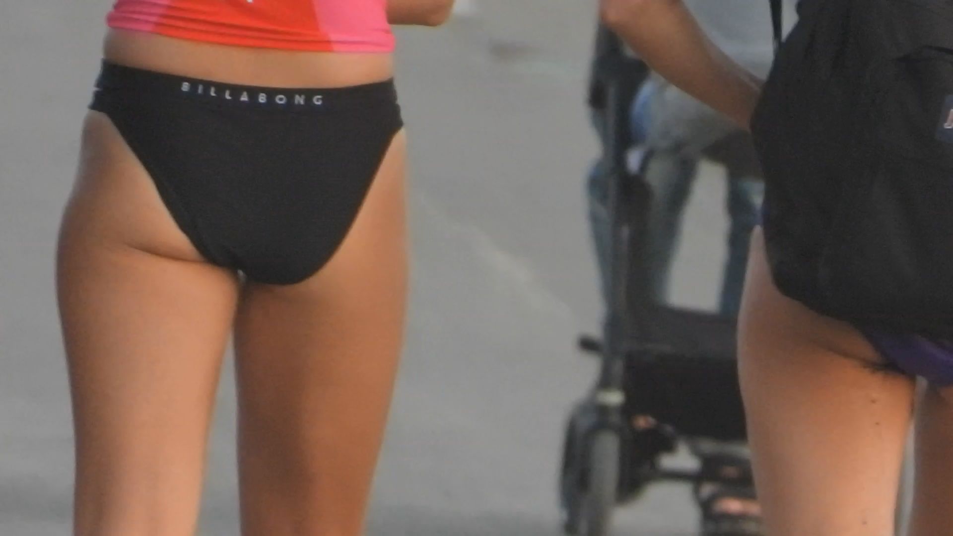 そして、ビキニの食い込み直しでの思い切った引っ張り具合で、お尻のシルエットがさらに露わになる姿に興奮です!