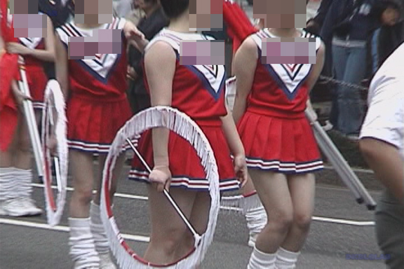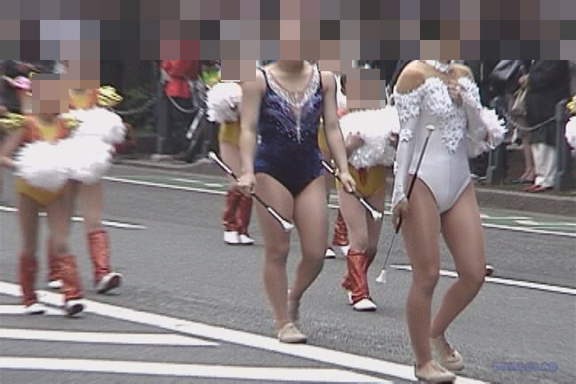 ビギナーのバトン娘のパレード待機シーンをじっくりと!チア衣装やレオタード衣装など様々な衣装がとってもプリティ~!!